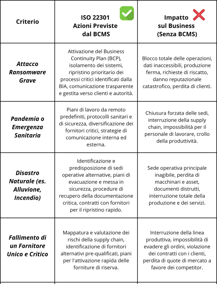 Il metodo studiato per lo standard ISO 22301 per ottenere un certificato aziendale riconosciuto a livello internazionale.